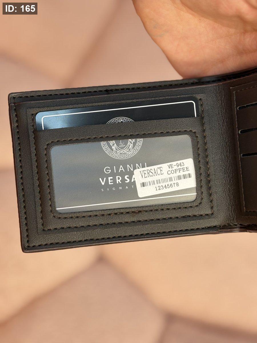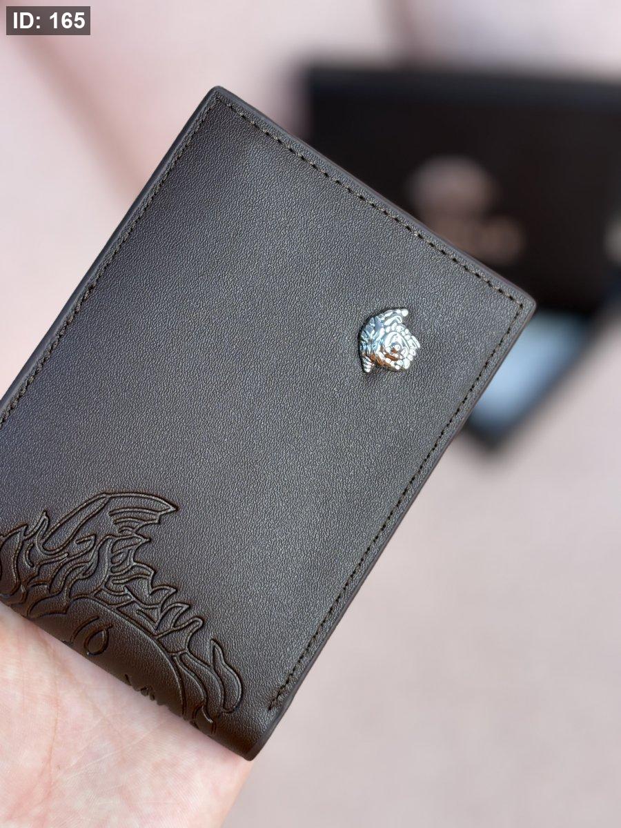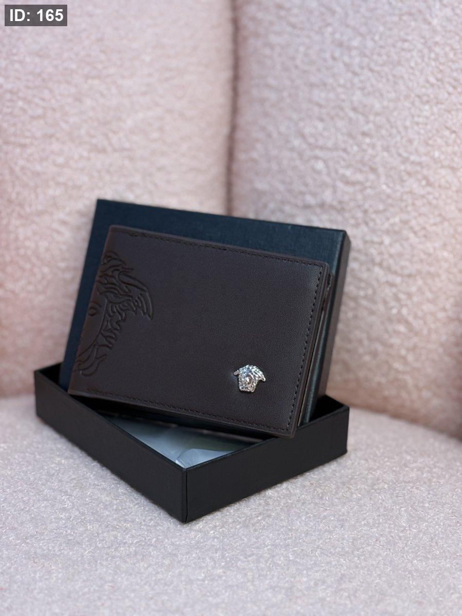 - تتميز بشعار رأس ميدوسا المعدني الفضي الأيقوني الخاص بفيرساتشي على الجانب الأيمن السفلي من المحفظة.