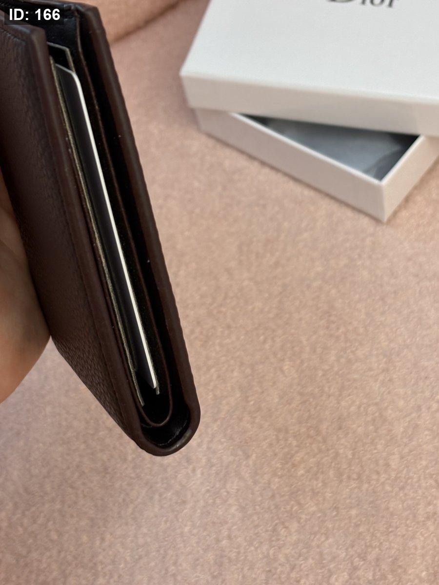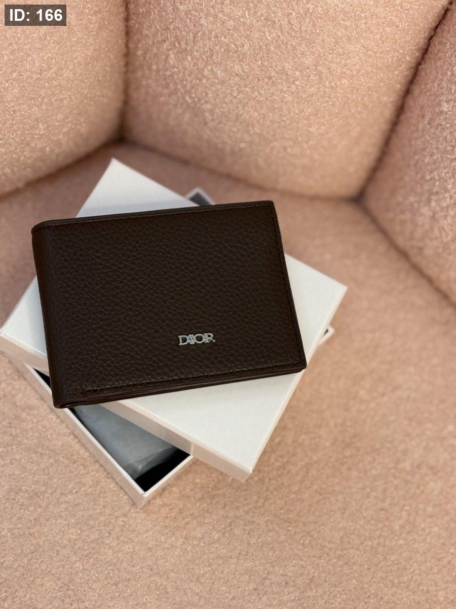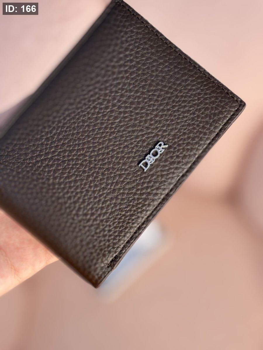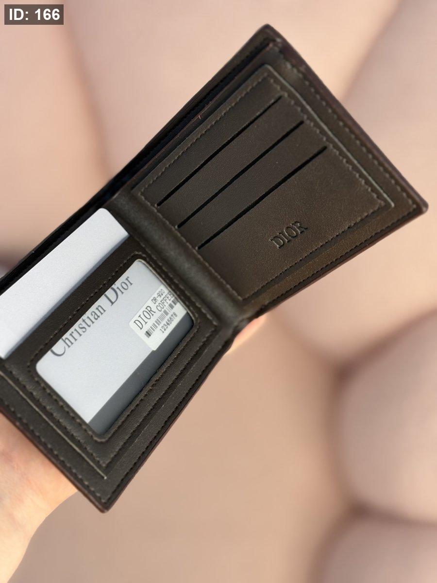 تأتي المحفظة في علبة بيضاء أنيقة، مما يوحي بأنها قد تكون هدية أو منتجًا فاخرًا. تتميز بتصميم كلاسيكي وبسيط، مع نسيج محبب على الجلد.