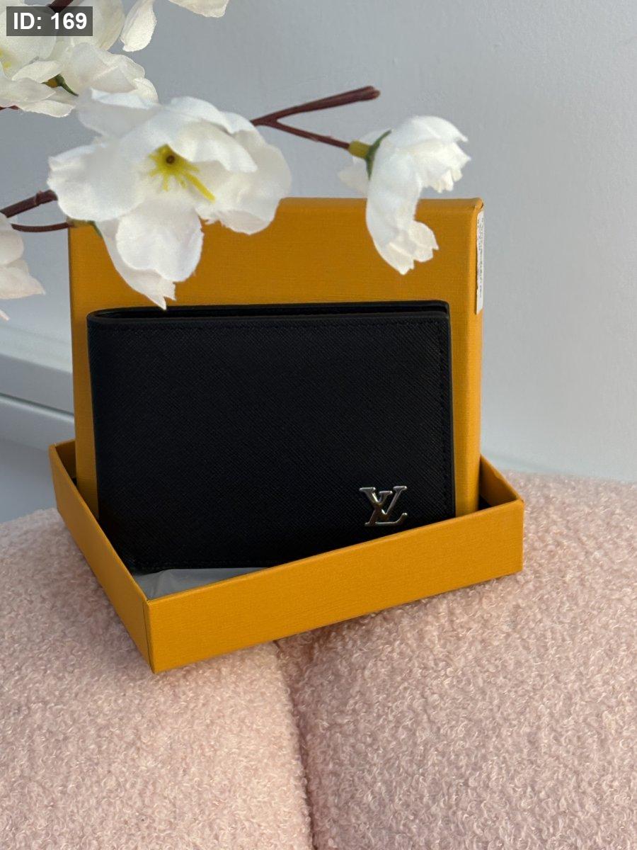 المحفظة معروضة داخل علبة هدايا برتقالية اللون، مما يوحي بأنها منتج جديد أو هدية.