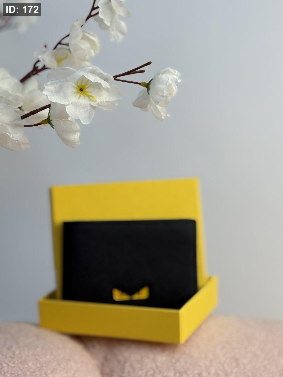 تأتي المحفظة داخل علبة فندي صفراء اللون.