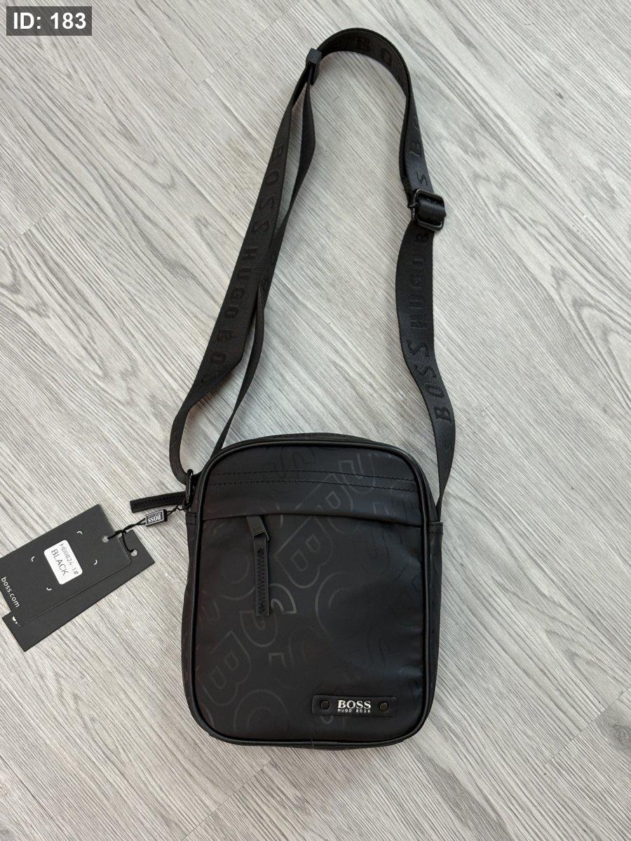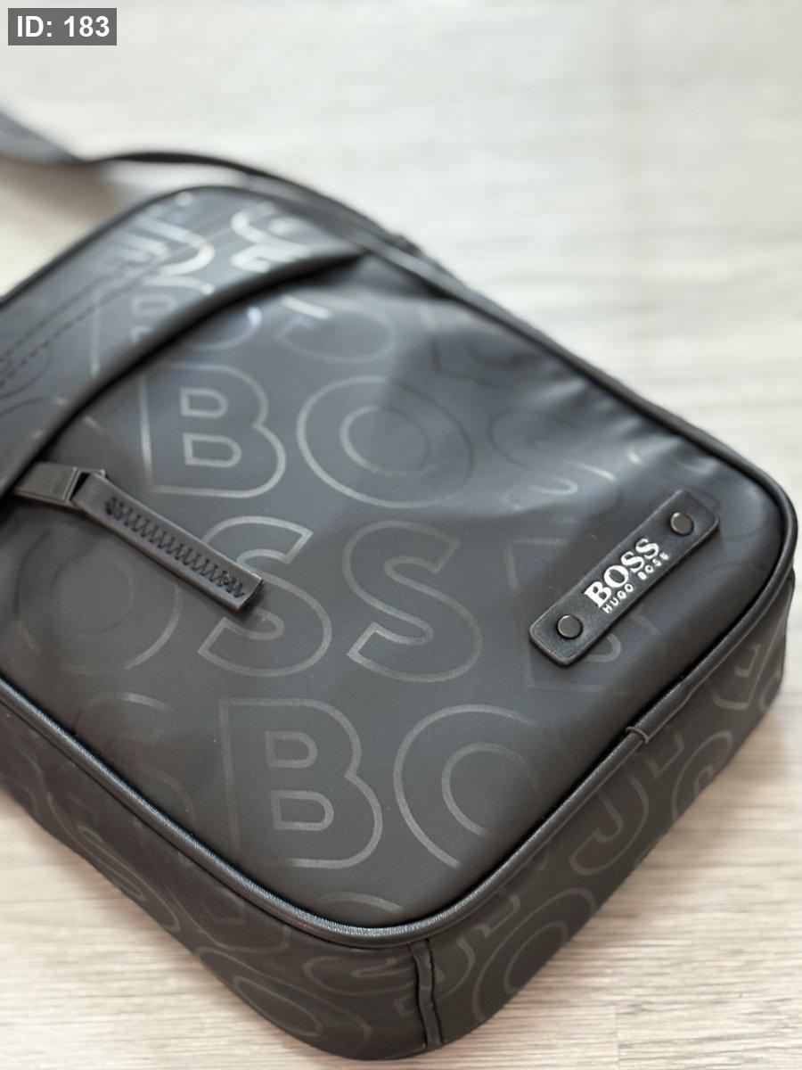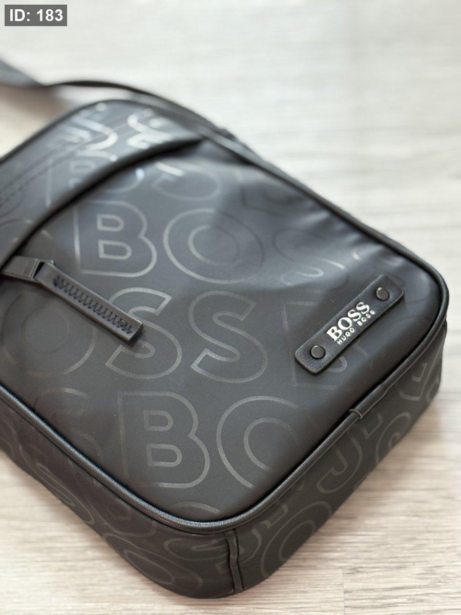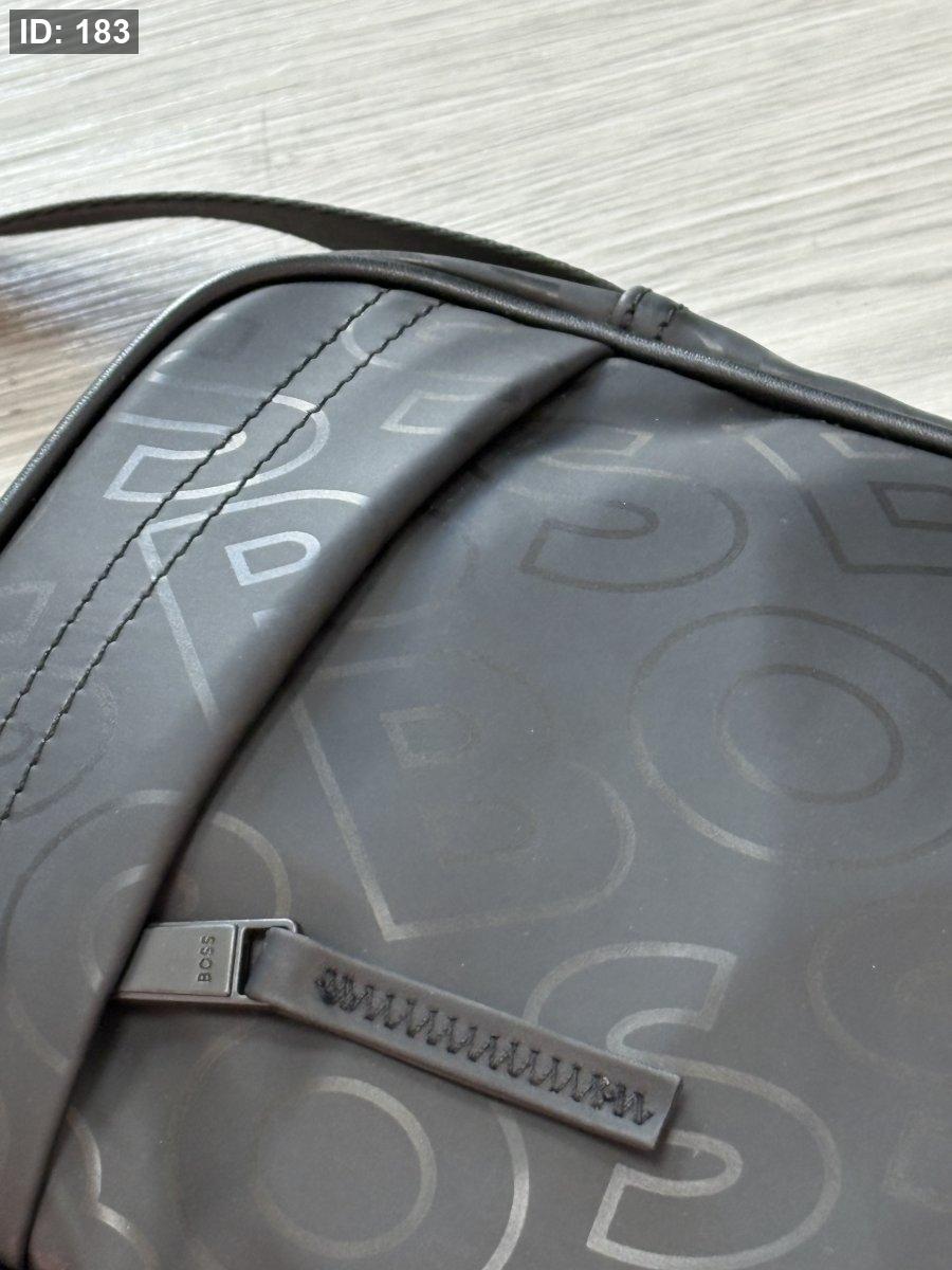 مزودة بحزام كتف قابل للتعديل يحمل علامة Boss التجارية، وإغلاق بسحاب، مع أجزاء معدنية فضية مصقولة.
