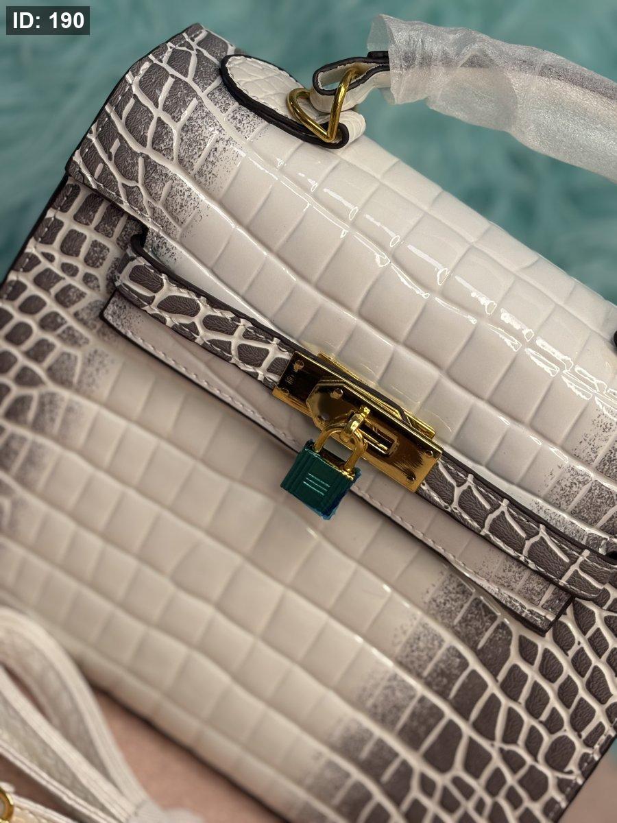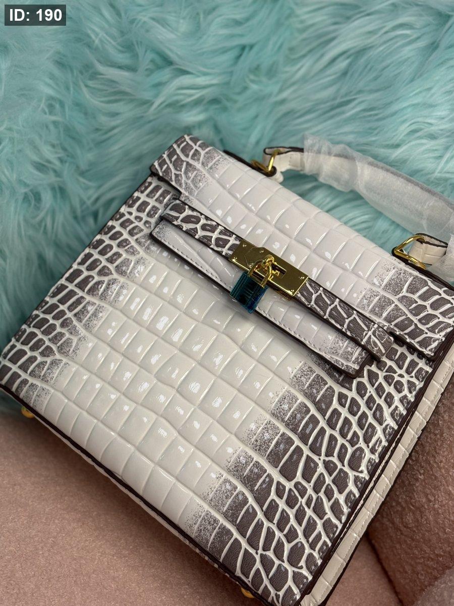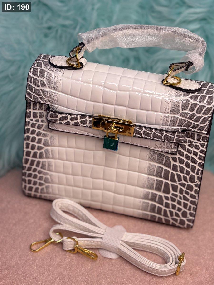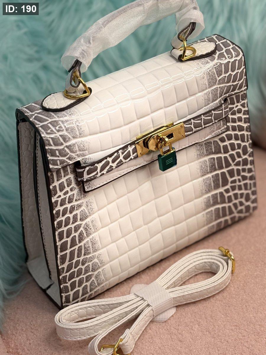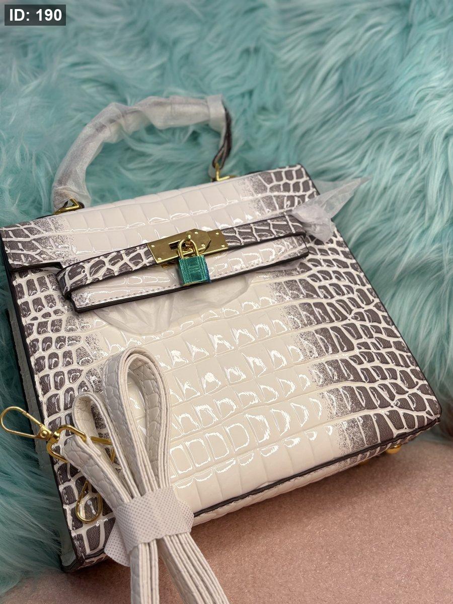 تتميز الحقيبة بتصميمها الأنيق والكلاسيكي، مع قفل معدني ذهبي ومقبض علوي.