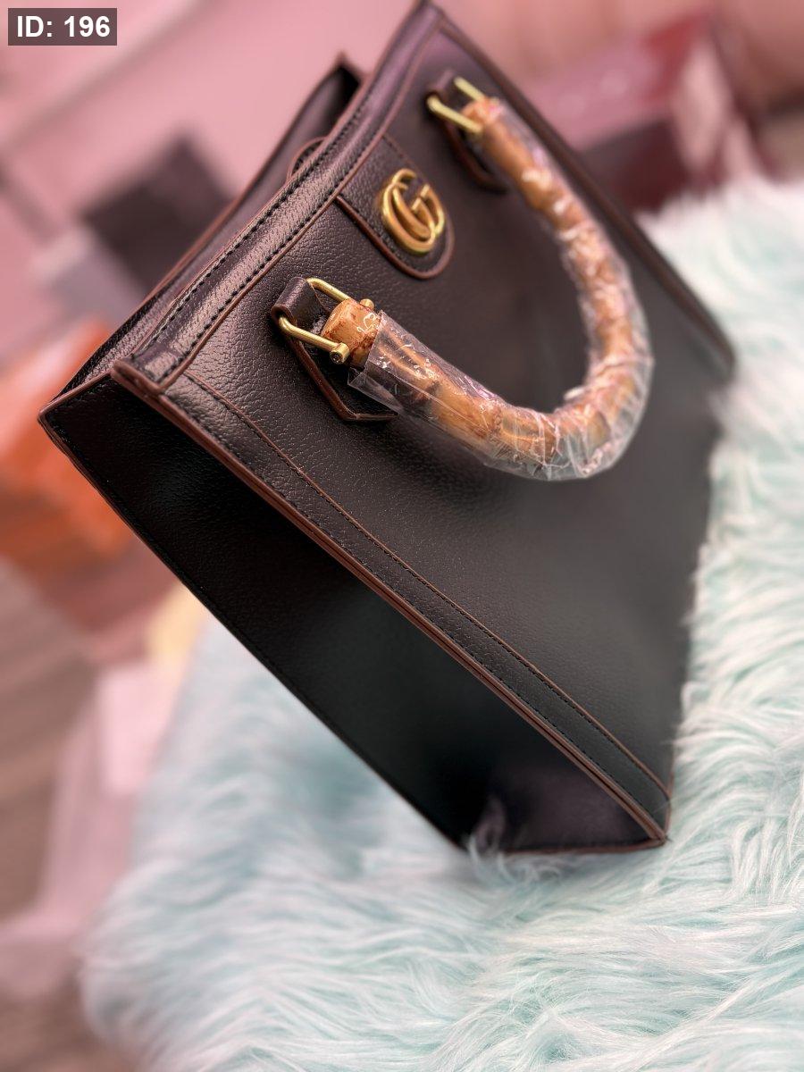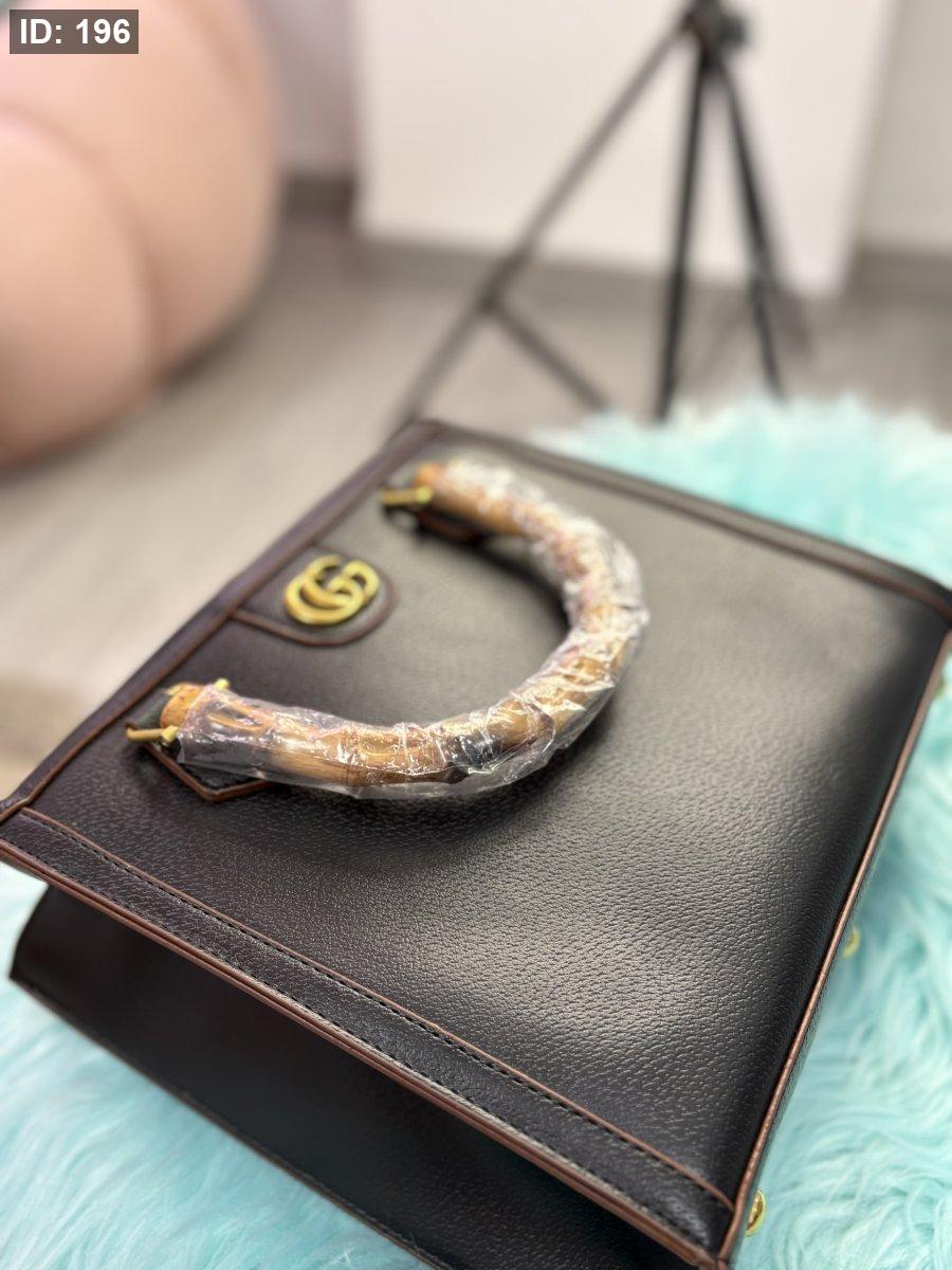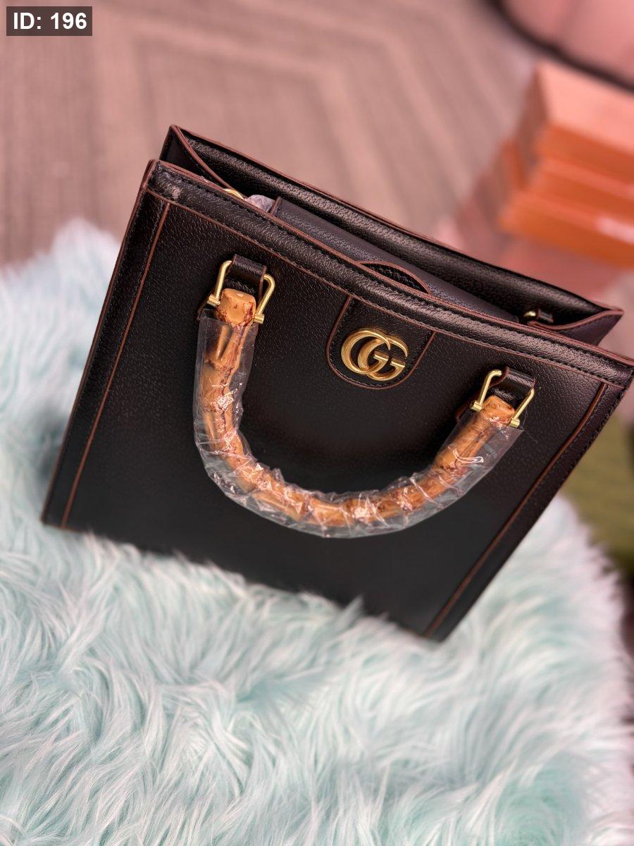 تصميم أنيق وعصري يتميز بشعار الماركة "GG" باللون الذهبي على الجزء العلوي من الحقيبة.