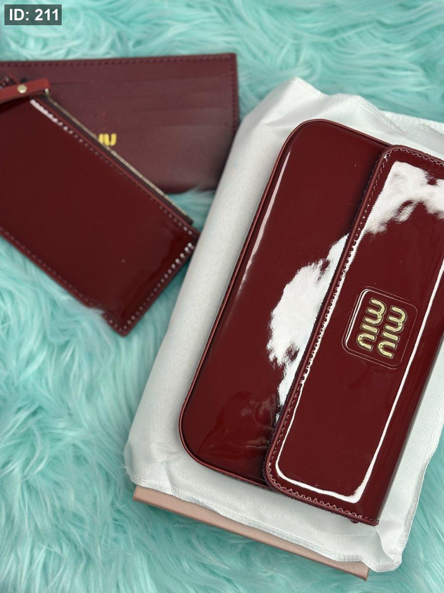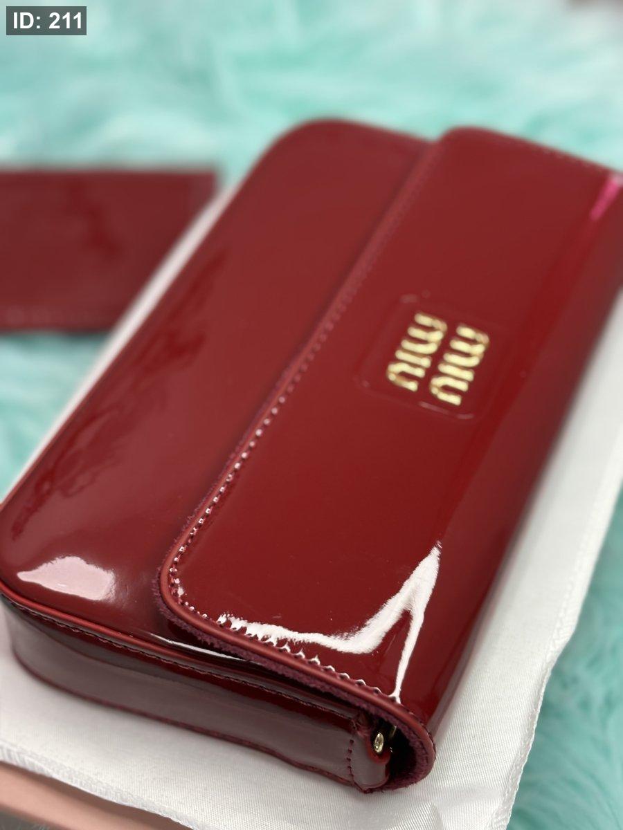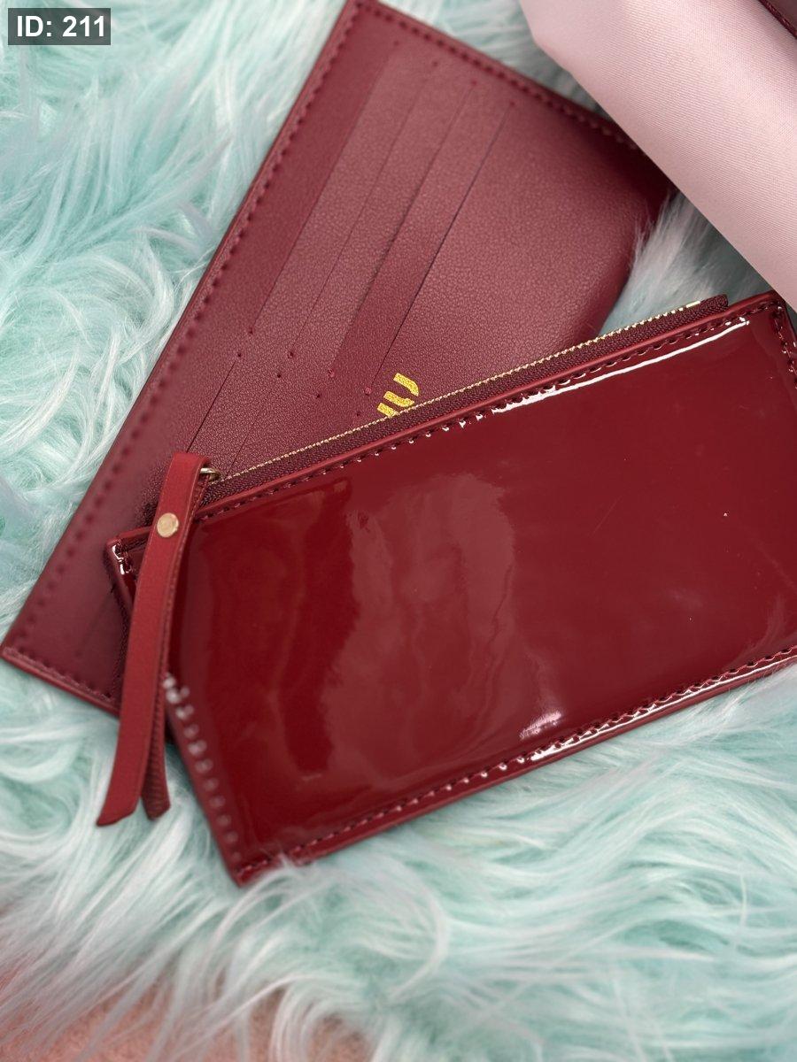 محفظة للبطاقات: بنفس اللون الأحمر الداكن واللامع، ويظهر عليها الشعار الذهبي.