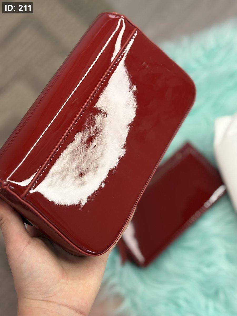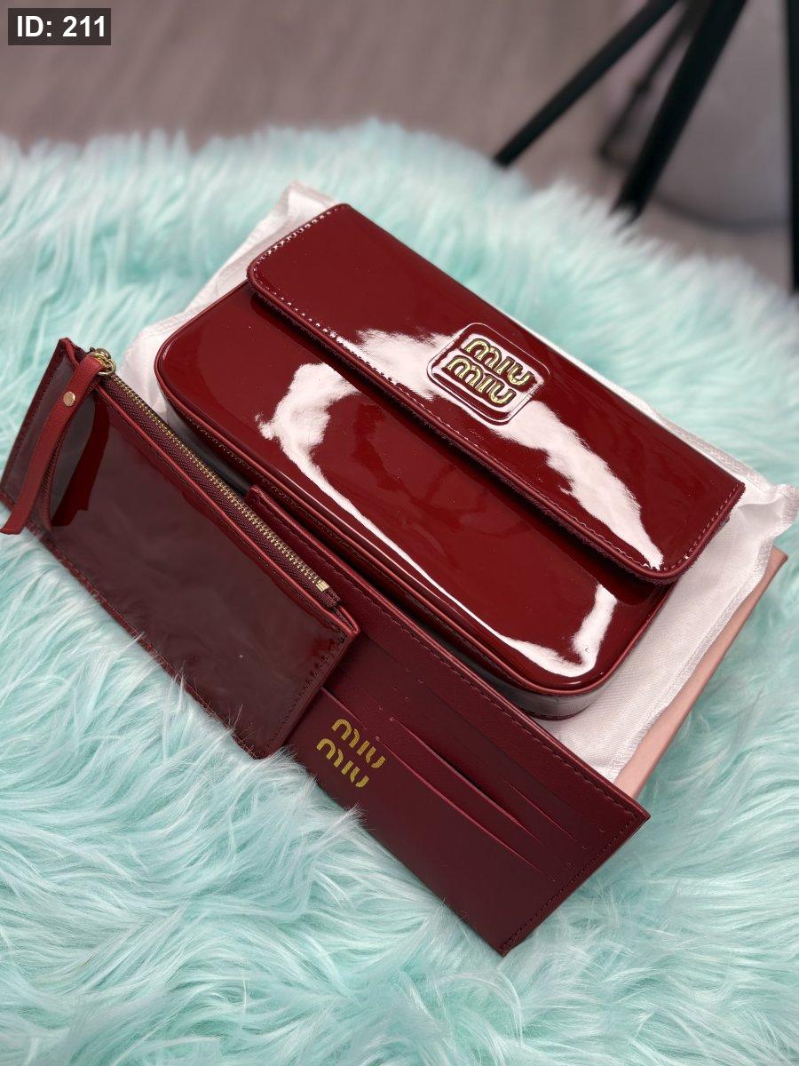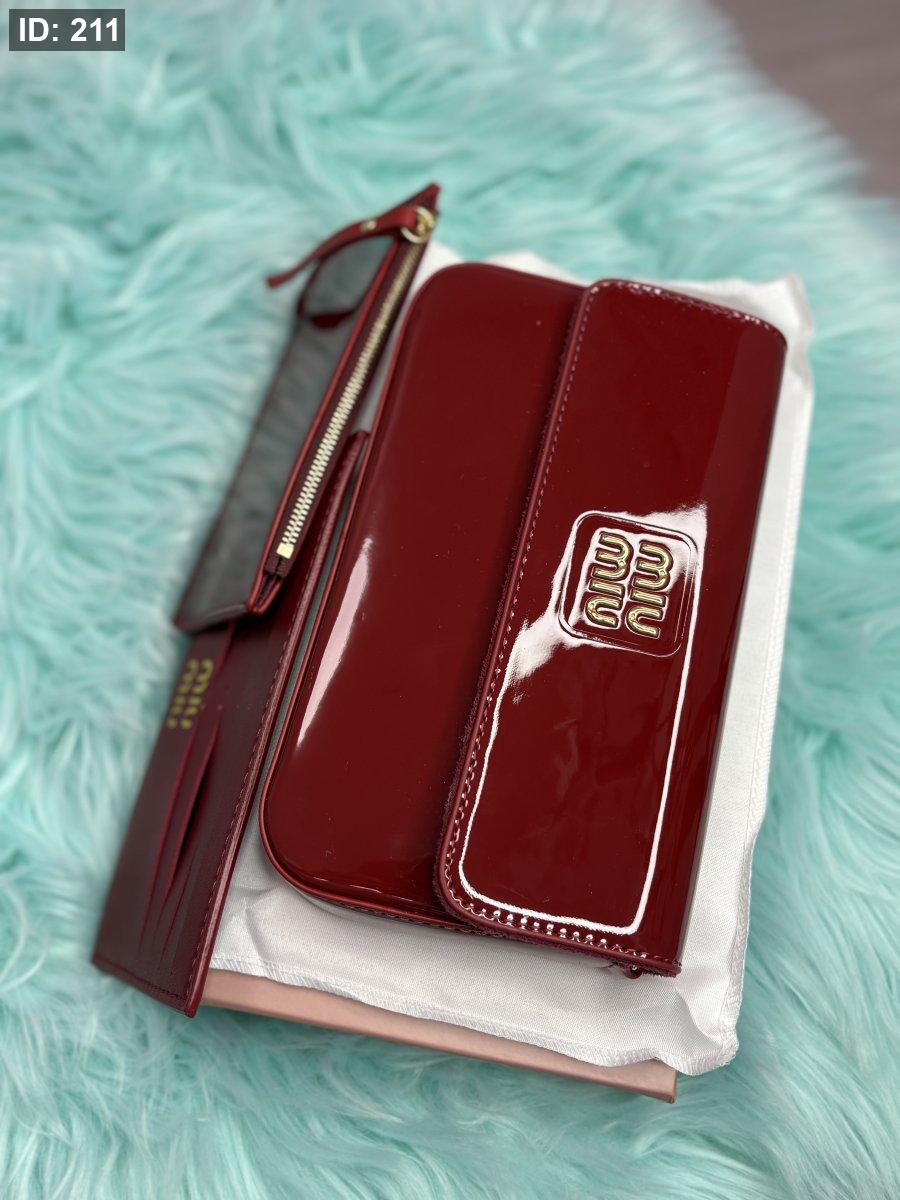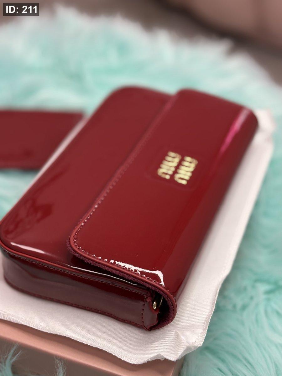 محفظة للبطاقات: بنفس اللون الأحمر الداكن واللامع، ويظهر عليها الشعار الذهبي.