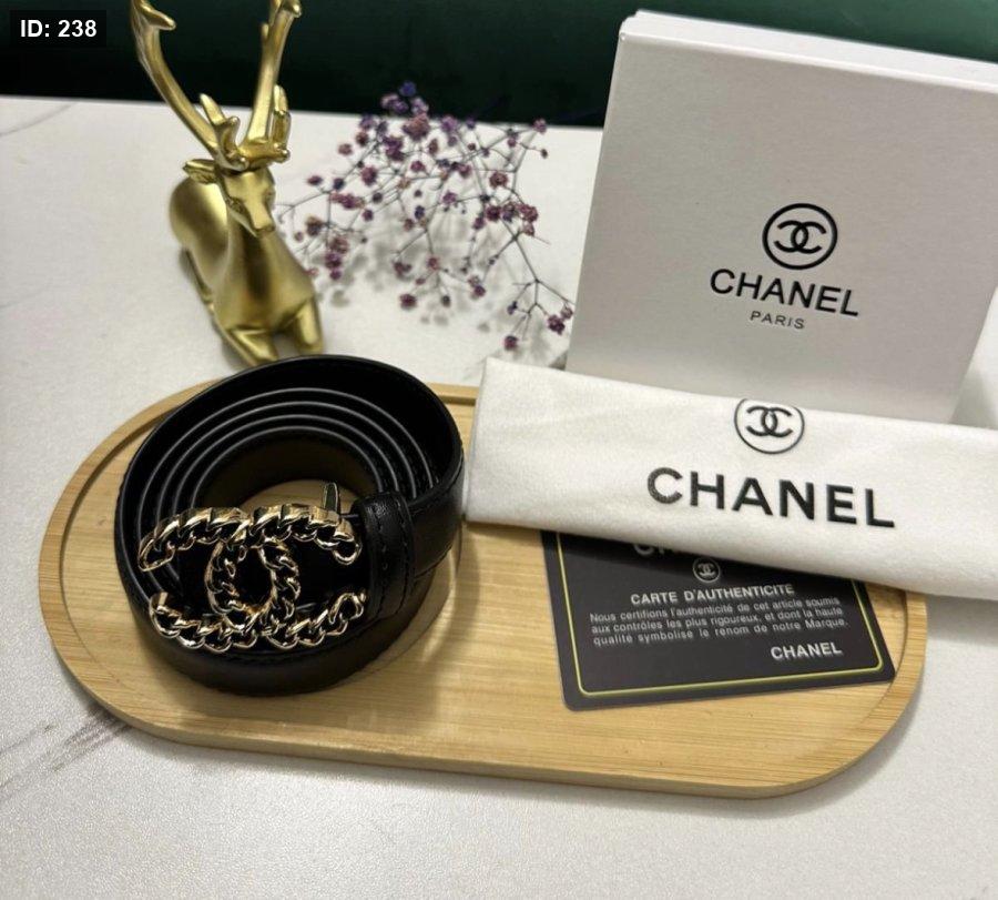 حزام شانيل جلد أسود بشعار CC ذهبي