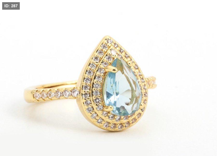 خاتم ذهبي فاخر حجر قطرة ازرق