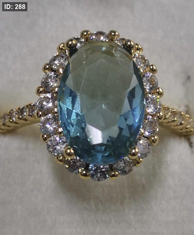 خاتم ذهبي فاخر حجر دائري ازرق