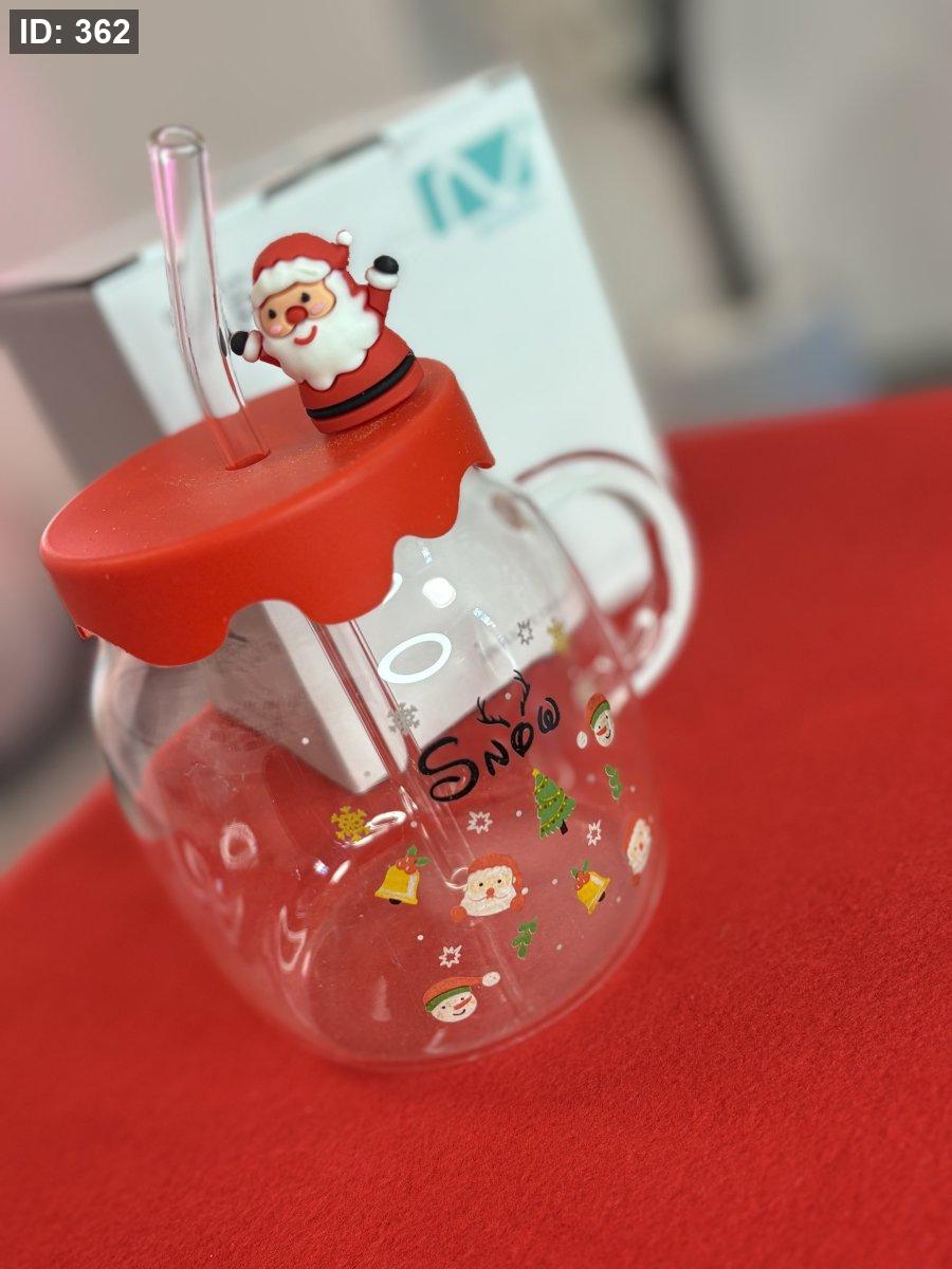 كوب زجاجي شفاف بتصميم عيد الميلاد.
