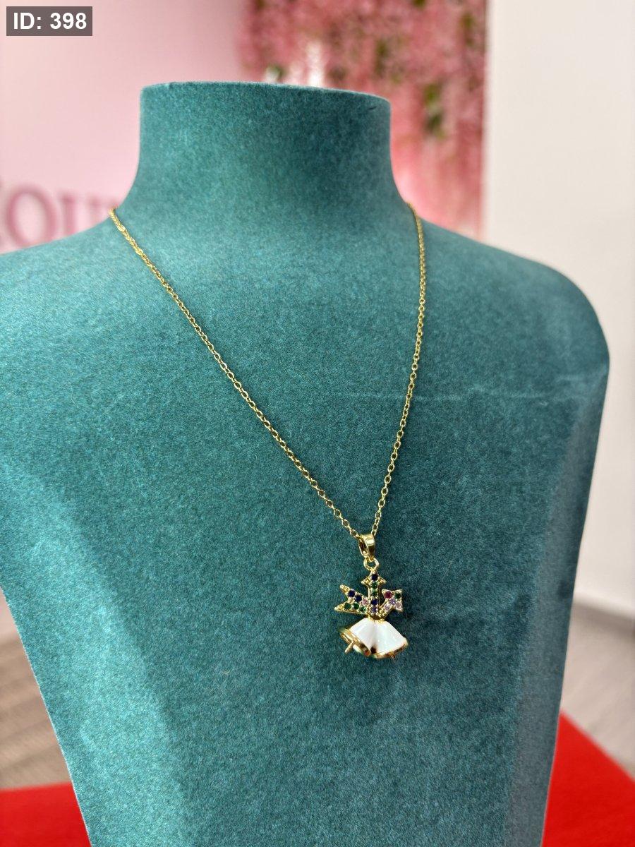 عقد ذهبي بقلادة مزينة بأحجار ملونة.