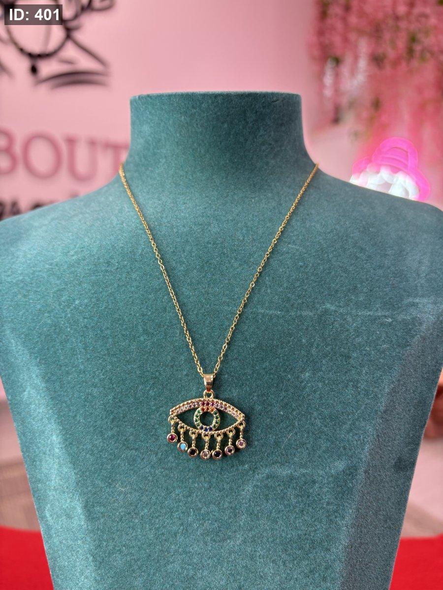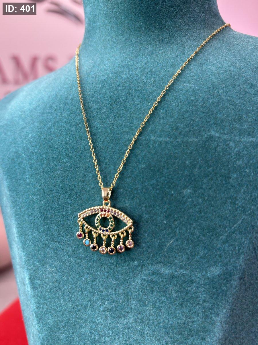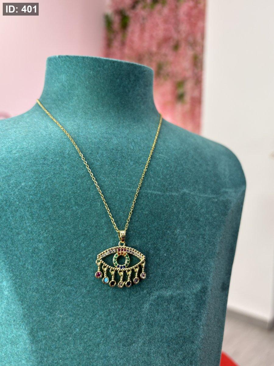 بدلاية عين الحسد مرصعة بأحجار الزركونيا المكعبة متعددة الألوان ومطلية بالذهب