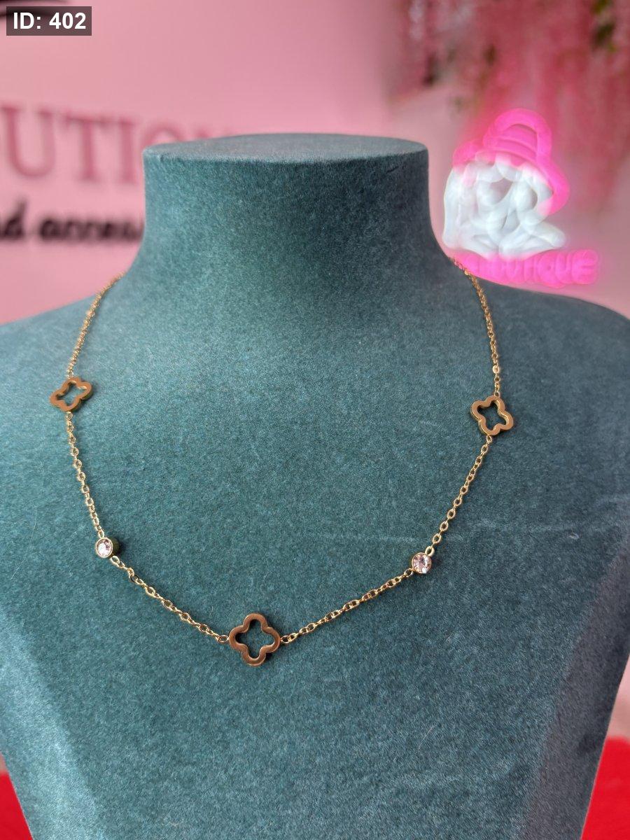 عقد ذهبي بتصميم زهرة البرسيم مرصع بحجر ألماس.